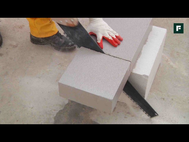 Готовую массу выливают в специальные металлические емкости, там происходит реакция, осуществляется вибрирование, которое ускоряет прохождение реакции, схватывания и затвердевания. Когда масса немного затвердевает, проволочной струной режут монолит на отдельные блоки, тщательно соблюдая размеры и удаляя все неровные места.