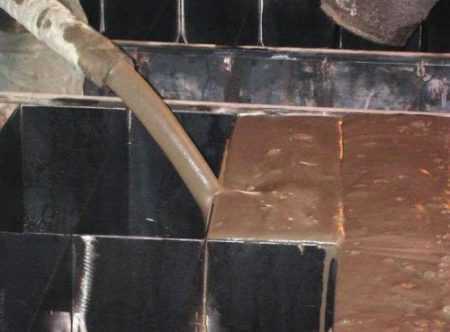 - Чтобы укрепить фундамент, на последнем этапе поверхность необходимо обработать материалом, обладающим гидроизоляционными свойствами. Чаще всего это битум.