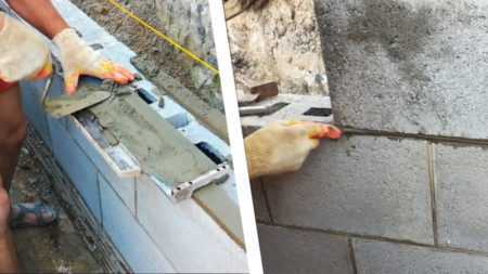 Теперь можно начинать кладку самих блоков, их кладка для забора мало чем отличается от способа укладки стен здания. Армировать их конечно же не нужно, когда эта работа закончена, и его высота уложена, то желательно установить сейсмопояс из древесины. Уклон должен быть на внешнюю сторону, чтобы он приобрел более эстетичный вид сверху можно положить черепицу.