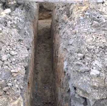 - Сначала нужно сделать подкоп, чтобы в земле, где будет устанавливаться фундамент под столбы , образовалась яма. Глубина подкопа должна составлять приблизительно 20-25 см. Ширина же должна быть равна ширине шлакоблока.