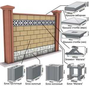 Схема строительства забора из блоков.