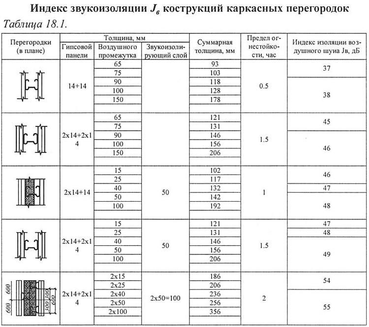 — к использованию в качестве перегородок без дверей между комнатами, между кухней и комнатой в квартире требуемое значение индекса изоляции воздушного шума составляет 43 дБ.