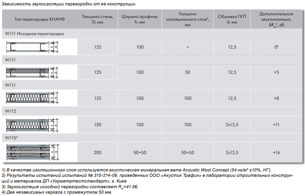 перегородки, тест на шум, характеристики