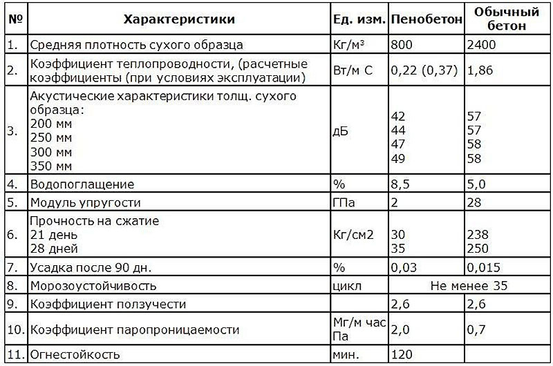 | Свойство | Единицы | Блок AAC | Глиняный кирпич |
