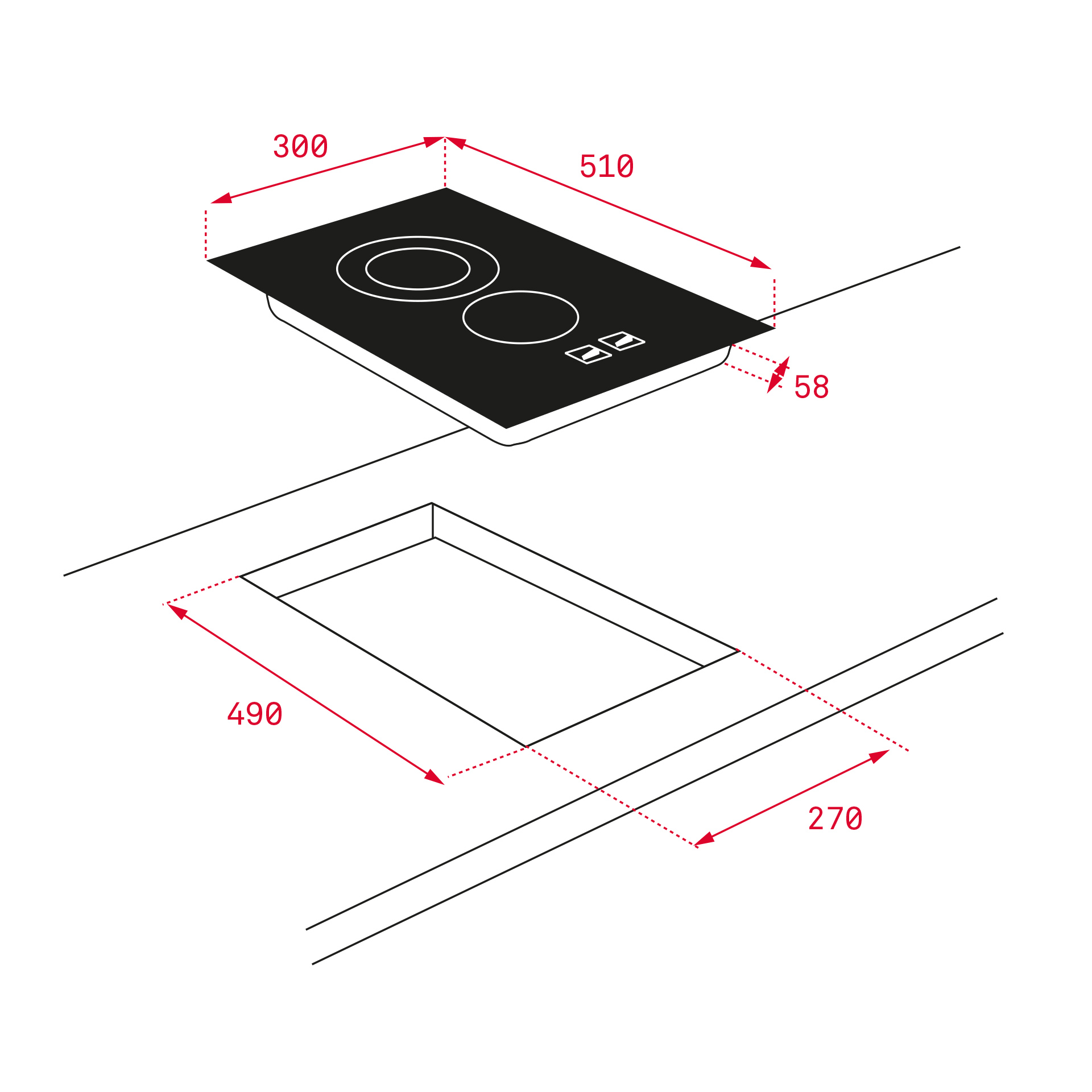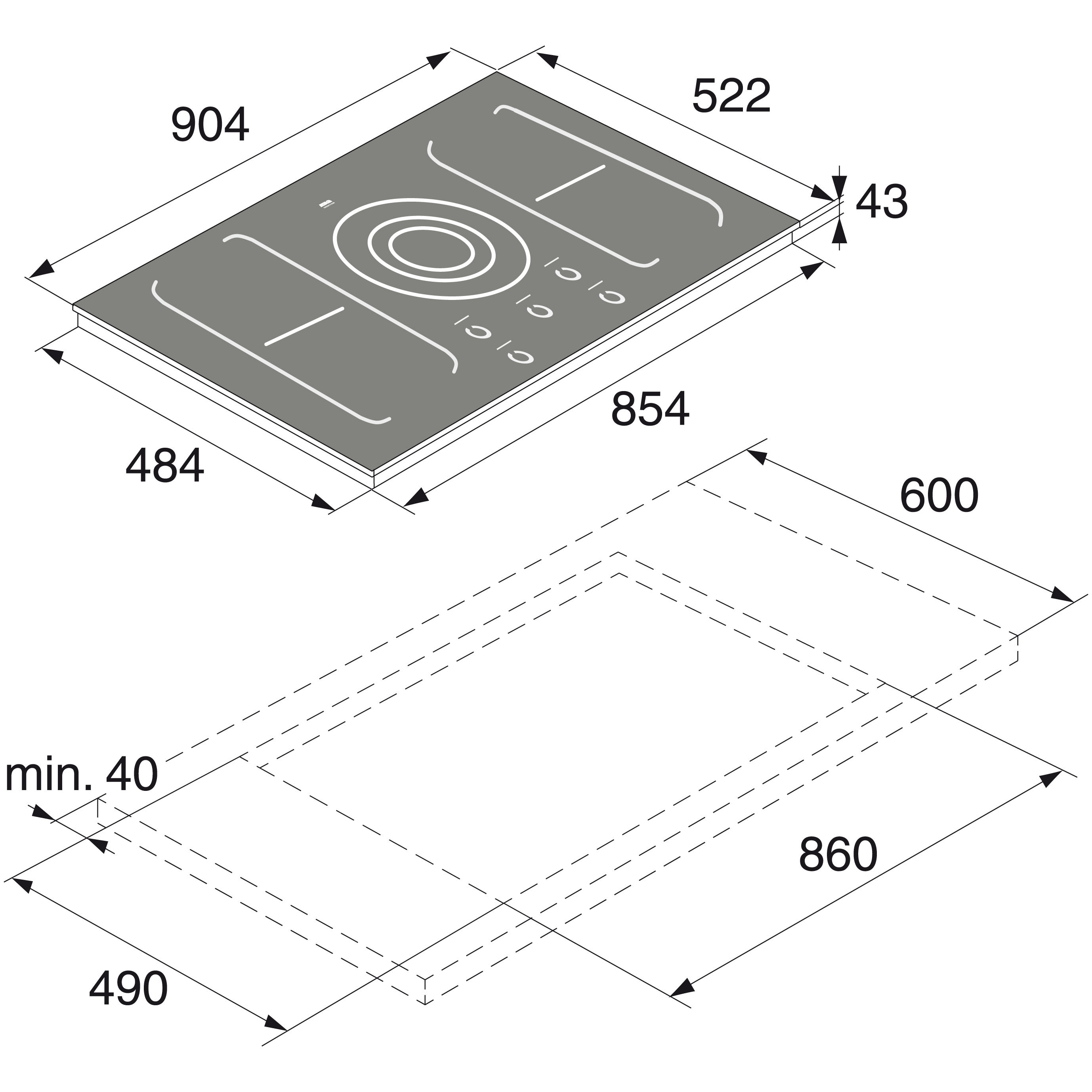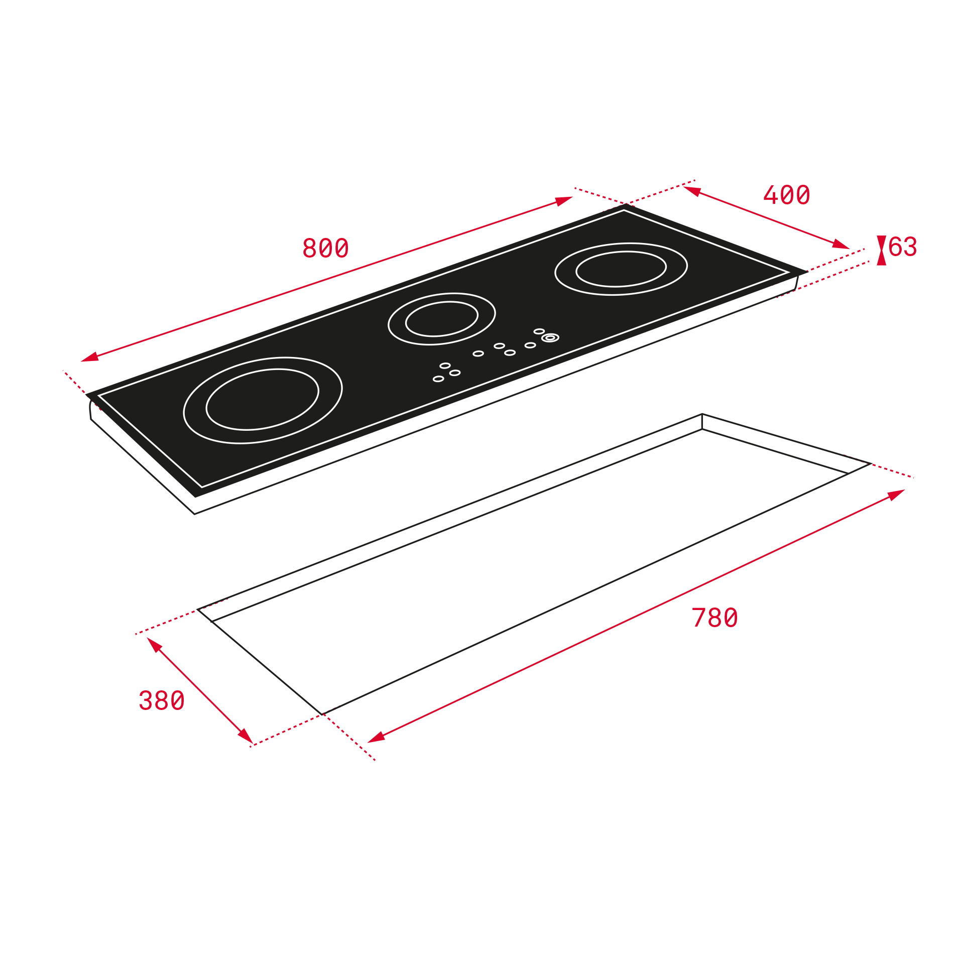 При приобретении варочной панели нужно обратить внимание на ее толщину (высоты у неё нет). У популярных моделей она может варьироваться от 60 до 80 мм, менее распространены параметры от 40 мм и до 100 мм. Минимальная ширина панели составляет 25-30 см, максимальная — до 90 см.