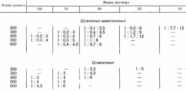 Более подробно соотношение элементов цементных растворов прописаны в таблицах СП 82-101-98.