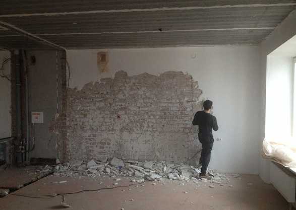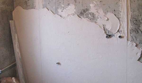 - При проведении работ при отрицательной температуре воздуха. На стене имеется тончайший лед и, ложась поверх него, при весеннем потеплении штукатурка начнет отходить от стен.