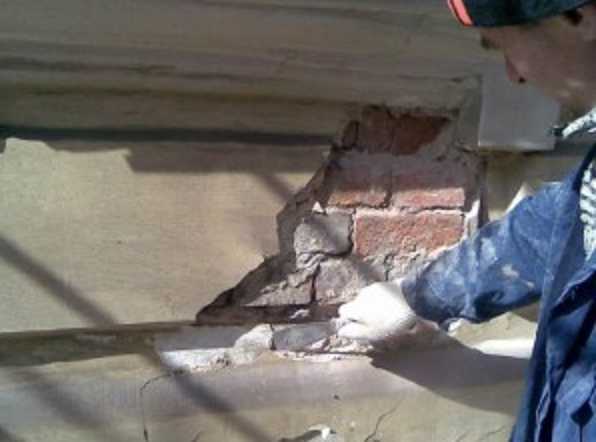 Большие трещины или сколы следует заделать заранее, не менее чем за сутки до начала основных работ. Моют щеткой и водным раствором клея, например, ПВА или Бустилата, уже перед самым началом оштукатуривания.