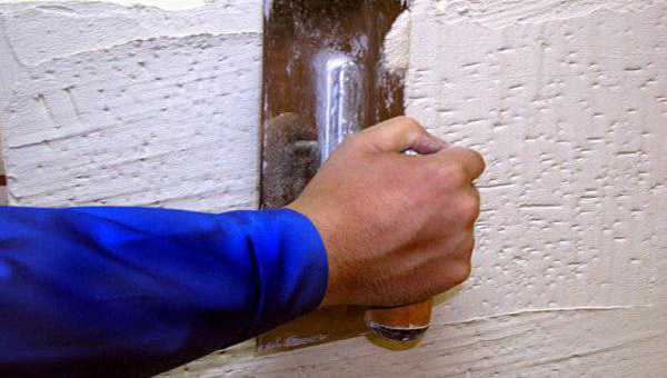 - при помощи терки. Это специальная терка для декоративной штукатурки. С ее помощью наносится вертикальные борозды, которые повторяют древесную кору. Их конфигурация будет меняться в зависимости от нажима и угла надавливания;