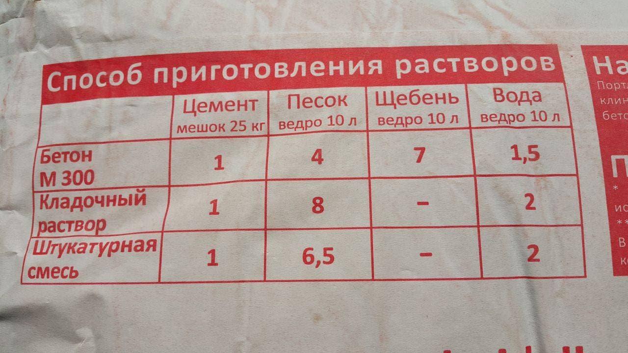 | Цемент М400 | 1 | 1 | 1 | 1 | 1 |
