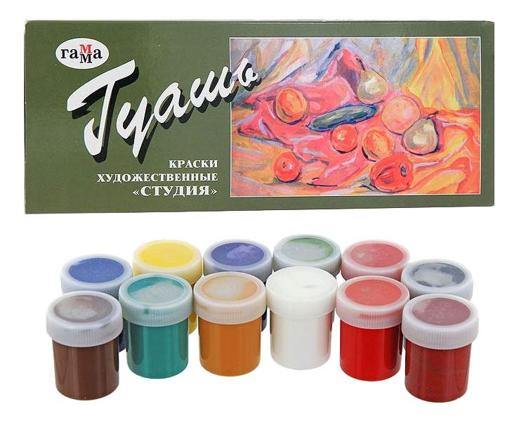 Краска гуашь представляет собой тип краски, которая сочетает в себе натуральные или синтетические пигменты, воду и гуммиарабик в качестве связующего вещества, удерживающего краску вместе. Он также может включать мел или другие разновидности, чтобы сделать текстуру твердой и гибкой в течение длительного времени.