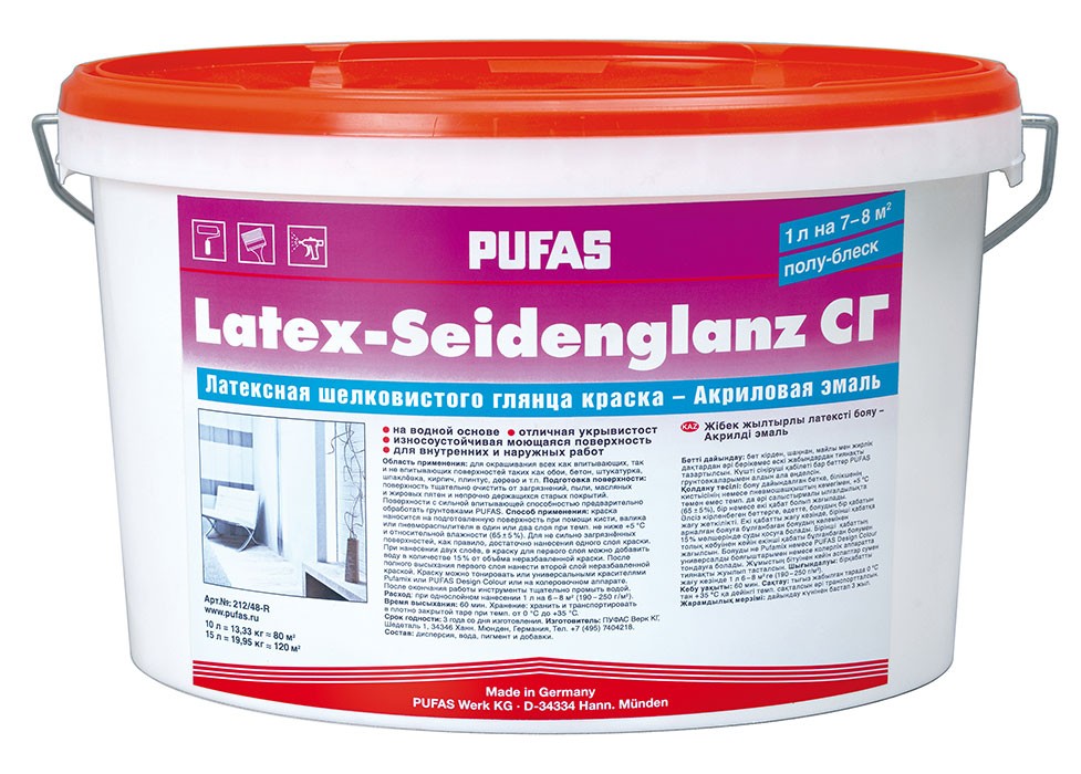 После высыхания становится матовой. Если хотите эффект глянца, можно покрыть лаком. Он долговечен, не ломается, не выцветает и не трескается. Его можно использовать внутри и снаружи помещений для окраски мебели, внутренних стен или окрашенных потолков.