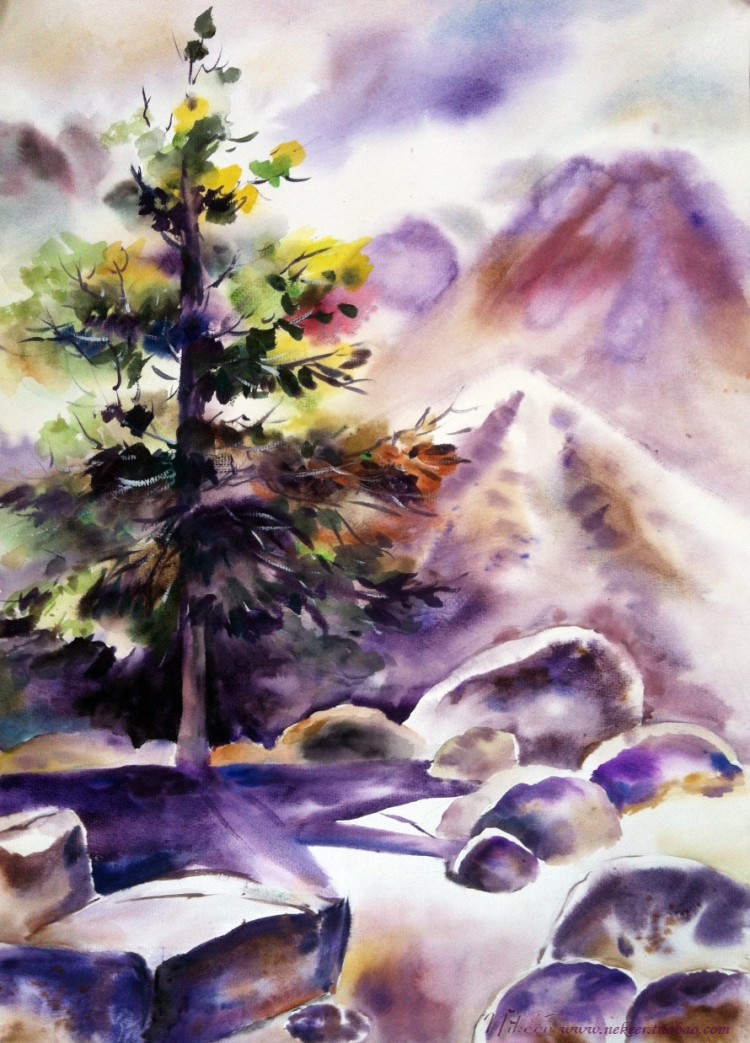 У акварели в этом плане дела обстоят немного иначе. Так как у неё невысокая плотность краски, то это мешает изменить предыдущий слой краски, если нанести на него новый слой.