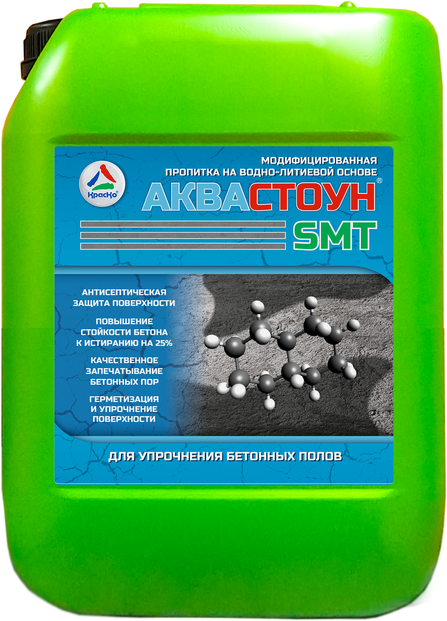 Описание товараАквастоун — упрочняющая и обеспыливающая пропитка для бетонного пола и цементной стяжки глубокого проникновения. Пропитка представляет собой водный раствор неорганических соединений и целевых добавок. Пропитка Аквастоун специально разработана для упрочнения бетонных оснований и снижения их проницаемости для жидких сред при устройстве полов промышленного назначения. НАЗНАЧЕНИЕ Пропитка для бетона и цементной стяжки Аквастоун подходит для любых бетонных полов (включая низкомарочный бетон). Применяется для упрочнения и обеспыливания как промышленных бетонных полов, так и бытовых бетонных стяжек. Рекомендуется для подготовки основания цементно-песчаных стяжек под укладку плитки, паркета, ламината, линолеума, ковролина в жилых и офисных помещениях. ОБЪЕКТЫ ПРИМЕНЕНИЯ Аквастоун рекомендуется для применения внутри и снаружи помещений на объектах промышленного и гражданского назначения: