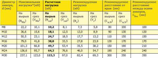 ΠΡΠ΅ ΡΠ΅Ρ Π½ΠΈΡΠ΅ΡΠΊΠΈΠ΅ Ρ Π°ΡΠ°ΠΊΡΠ΅ΡΠΈΡΡΠΈΠΊΠΈ Π°Π½ΠΊΠ΅ΡΠΎΠ² ΡΠΊΠ°Π·ΡΠ²Π°ΡΡΡΡ Π² ΡΠ°Π±Π»ΠΈΡΠ΅, ΡΡΠΎ ΠΌΠΎΠ³ΡΡ Π±ΡΡΡ Π²Π΅Ρ, ΠΌΠ°ΠΊΡΠΈΠΌΠ°Π»ΡΠ½ΡΠΉ ΠΊΡΡΡΡΡΠΈΠΉ ΠΈ Π΄ΠΎΠΏΡΡΡΠΈΠΌΡΠΉ ΠΈΠ·Π³ΠΈΠ±Π°ΡΡΠΈΠΉ ΠΌΠΎΠΌΠ΅Π½Ρ, ΠΌΠΈΠ½ΠΈΠΌΠ°Π»ΡΠ½Π°Ρ Π²ΡΡΡΠ²Π°ΡΡΠ°Ρ ΡΠΈΠ»Π°, ΠΎΠΏΡΠΈΠΌΠ°Π»ΡΠ½ΡΠ΅ Π½Π°Π³ΡΡΠ·ΠΊΠΈ, ΡΠ°ΡΡΡΠΎΡΠ½ΠΈΠ΅ ΠΌΠ΅ΠΆΠ΄Ρ ΠΎΡΡΠΌΠΈ ΠΈ Π΄ΠΎ ΠΊΡΠ°Ρ ΠΈ Ρ.Π΄. Π ΡΠΎΠΎΡΠ²Π΅ΡΡΡΠ²ΠΈΠΈ ΡΠΎ Π²ΡΠ΅ΠΌΠΈ ΡΡΠΈΠΌΠΈ ΠΏΠ°ΡΠ°ΠΌΠ΅ΡΡΠ°ΠΌΠΈ Π²ΡΠ±ΠΈΡΠ°ΡΡ ΠΏΠΎΠ΄Ρ ΠΎΠ΄ΡΡΠΈΠ΅ ΠΈΠ·Π΄Π΅Π»ΠΈΡ ΠΈ Π²ΡΠΏΠΎΠ»Π½ΡΡΡ ΠΊΠ°ΡΠ΅ΡΡΠ²Π΅Π½Π½ΠΎΠ΅ ΠΊΡΠ΅ΠΏΠ»Π΅Π½ΠΈΠ΅ ΠΊ Π±Π΅ΡΠΎΠ½Ρ Π°Π½ΠΊΠ΅ΡΠ°ΠΌΠΈ.