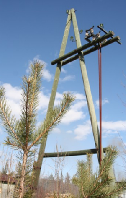 Подробно, о монтаже опор для отвода к частному дому в следующей статье. Здесь только замечу, что и деревянные и железобетонные опоры устанавливаются без фундамента в заранее подготовленный цилиндрический котлован диаметром больше на 10 см диаметра опоры.