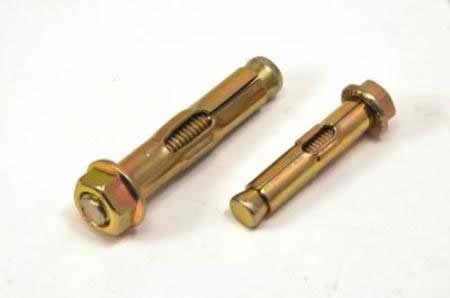 Клиновые анкерные болты — самые популярные, благодаря простой конструкции и высокой надежности. Используются для бетонных конструкций, навесных элементов, металлических профилей, подвесных потолков, в быту и строительстве. Конструкция состоит из шпильки с гайкой и распорной втулки, надетой на конусную часть.