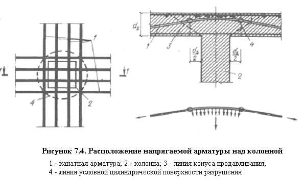 7.4.1.1 Расчет продольной арматуры конструкции с оголовками колонн