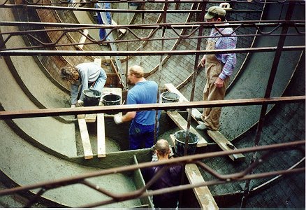 Бетон вроде бы не плавает, но и сталь тоже. Это связано с вытеснением воды. Бетонные корпуса относительно тонкие. Корпус Пало-Альто имеет толщину пять дюймов снизу и четыре дюйма по бокам. В корпусе в семь раз больше стальных арматурных стержней, чем требуется для цементных работ на суше.Цемент, использованный для строительства корпуса, был доставлен из Давенпорта, а воздушный кирпич был заменен на половину необходимого гравия, чтобы облегчить вес.
