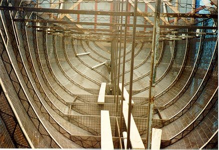 Ферроцемент представляет собой тип железобетона, в котором матрицей является портландцементный раствор, а армирование состоит в основном из слоев стальной проволочной сетки.Обычно используется тканая или сварная холоднотянутая проволочная сетка с сеткой от ¼ до 1 дюйма и диаметром проволоки от 0,02 до 0,06 дюйма. В настоящее время железоцементные конструкции чаще всего используются для изготовления корпусов лодок толщиной от ½ до 1½ дюймов. В наиболее распространенной технике изготовления корпусов лодок используются гнутые трубы и . стержни для определения формы корпуса. Поверх каркаса укладывают проволочные сетки и обмазывают раствором с обеих сторон.