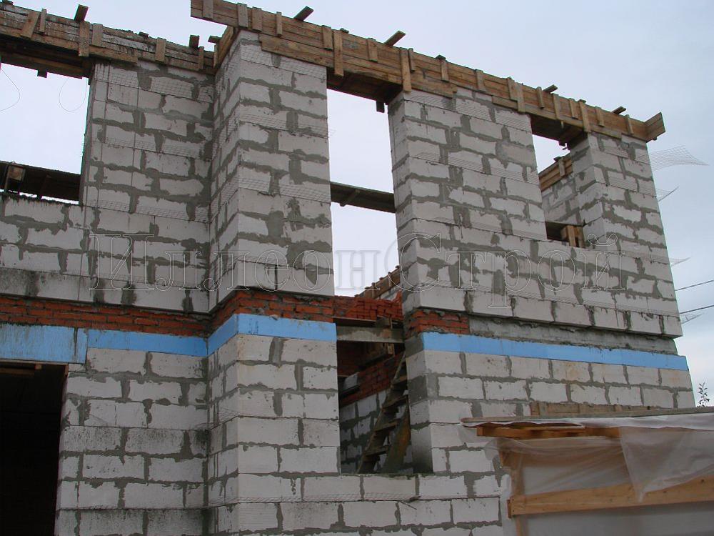 При строительстве дома из газосиликатных блоков необходимым условием является изготовление армопояса из бетонного раствора. Армопояс для газобетона представляет собой монолитный слой бетона, равномерно распределенный по всему периметру стен дома. Такая конструкция на порядок повышает надежность стены из газобетона и всего строения. Для одноэтажного дома армопояс рекомендуется делать в средней части стены и под крышей, а для двухэтажного — между этажами и под крышей.