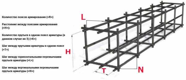 Сама схема армирования представляет из себя квадрат. Основную растягивающую нагрузку на себя принимает продольная арматура, которая делается из прутьев 10-12 диаметра. Поперечные рамки можно изготовить из арматуры 6-8 диаметров. Задача рамок – удерживать продольную арматуру в определенном положении.