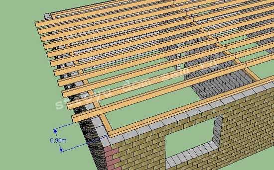 ШАГ 3: Устанавливаем выноса́. Шаг их определяется при расчёте стропил, о котором чуть позже (см. рис.3):