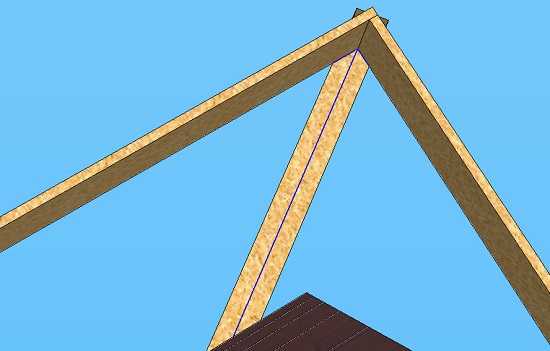 Вот так вблизи выглядят идеально сведенные стропильные ноги без коньковой балки.