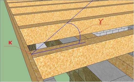 Делаем стропила таким образом – измеряем малкой угол нижнего запила «γ», вычисляем угол верхнего запила «δ»: