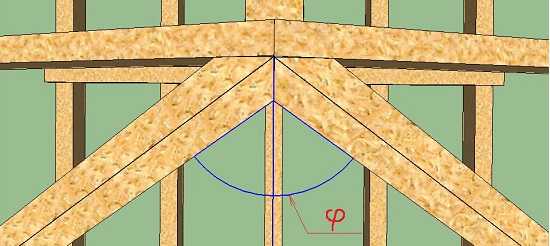Замеряем расстояние между точками «К-Л» и делаем по нему стропило. Концы запиливаем по определённым нами углам. После этого верхний конец нужно ещё раз запилить (заострить его) с учётом угла «φ», который так же замеряем с помощью малки (см. рис.23):