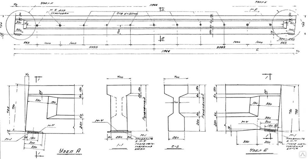 Цена таких изделий весьма высокая, как и прочностные показатели. Они широко применяются при возведении промышленных и крупнопанельных построек.Двутавровая железобетонная балка 12 м