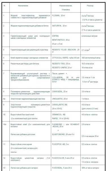 Примеры растворов и присадок, которые используются при строительстве бетонных бассейнов