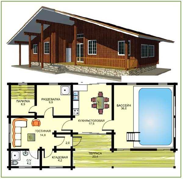 Проекты бань с бассейном. Фото готового объектаЕсли фирма выбрана правильно, хлопот будет значительно меньше, но денег уйдет прилично: работа хороших мастеров дешевой не бывает. Есть вариант, который обойдется дешевле, но потребует большого количества вашего времени и сил: можно сделать бассейн в бане своими руками.