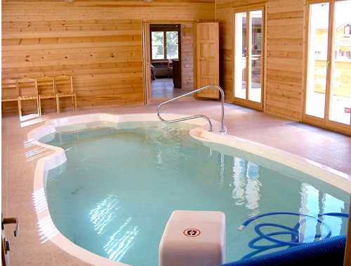 - Бассейны, установленные стационарно. Как несложно догадаться, к ним можно отнести бассейны, которые изначально предусматриваются конструкцией самого строения. Это может быть как большой бассейн, так и небольшая купель. Всё зависит от объёмов помещения, а также индивидуальных предпочтений владельцев.