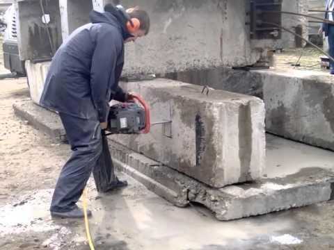 На видео наглядно демонстрируется, насколько легко осуществляется распил бетона (весьма существенной толщины) при помощи электрической цепной пилы: