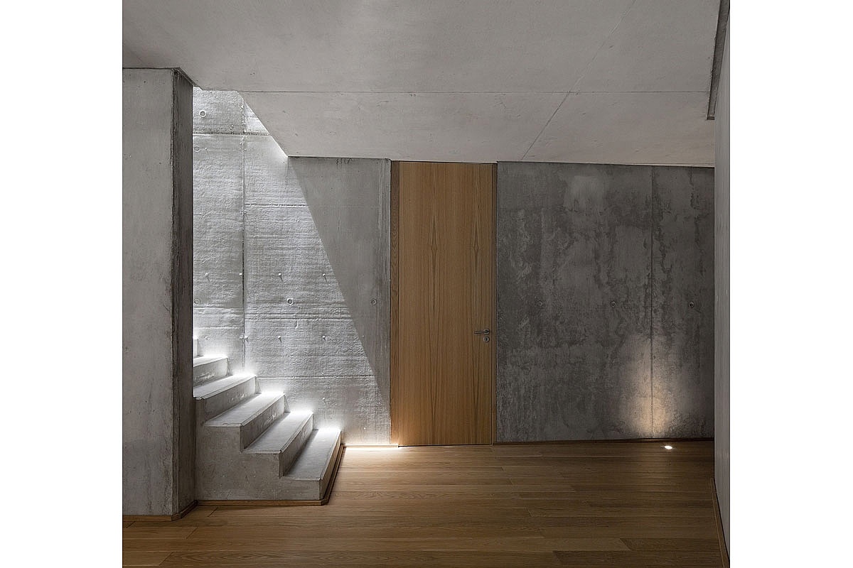 Внутри также можно применять любые современные отделочные материалы. Все коммуникации прокладываются скрыто в коробах или в толще бетона. Электропроводка прокладывается в штробы, фрезеруемые во внутренней опалубке.