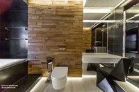 Можно было пойти ещё дальше и сделать деревянным пол, а также оформить с помощью этого материала другие элементы внутреннего убранства, которые расположены в горизонтальной плоскости. Но дизайнеры решили ограничиться небольшим процентом зрительной нагрузки.