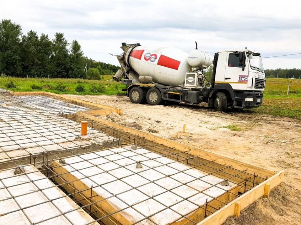 Заливка и укладка бетона — поставка миксером в готовую опалубку стен, ростверка (опалубка, армирование, бетонирование).