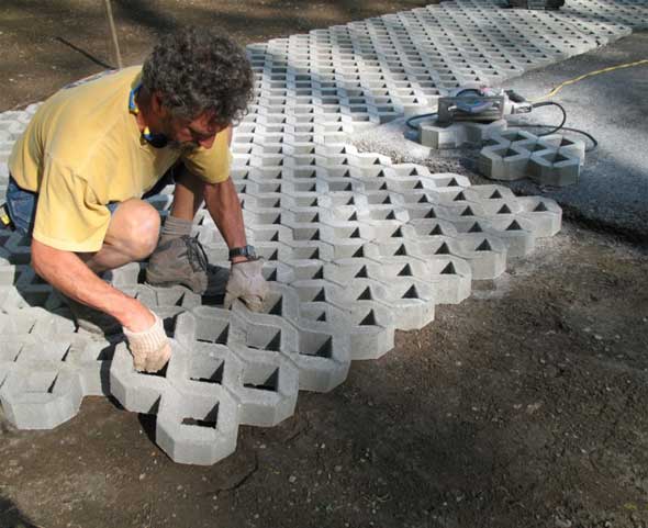 Проницаемый бетон или проницаемый асфальт — другие варианты, если вы хотите построить проницаемую стоянку, хотя и не такую зеленую, как брусчатка из переработанного пластика, заполненная гравием или травой.