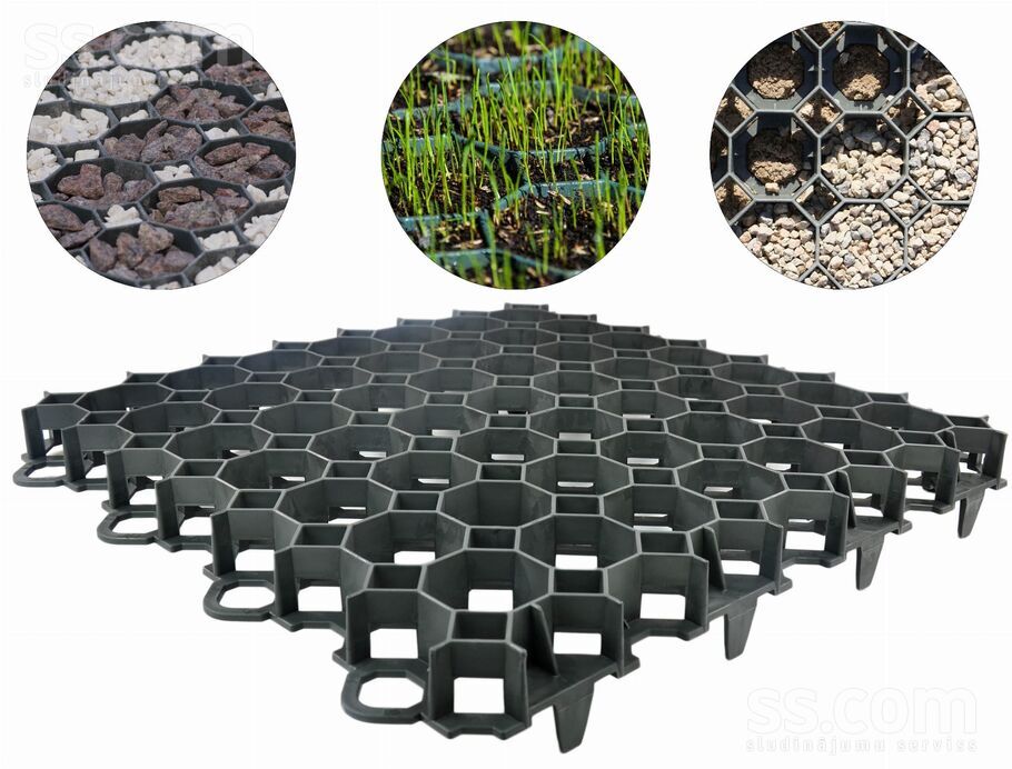 Предназначены для применения на автомобильных стоянках («экопарковках»), пешеходных дорожках, подъездных путях, широко используется для укрепления проходов к дому или саду, противопожарных и подъездных путей, насыпей, террас, городских участков озеленения, территорий вокруг спортивных сооружений, временных автомобильных стоянок и других земельных участков с травяным покрытием. Газонные решетки придают травяному покрытию высокую устойчивость к механическим нагрузкам.