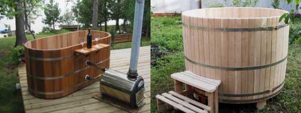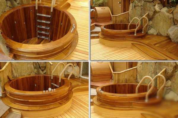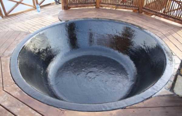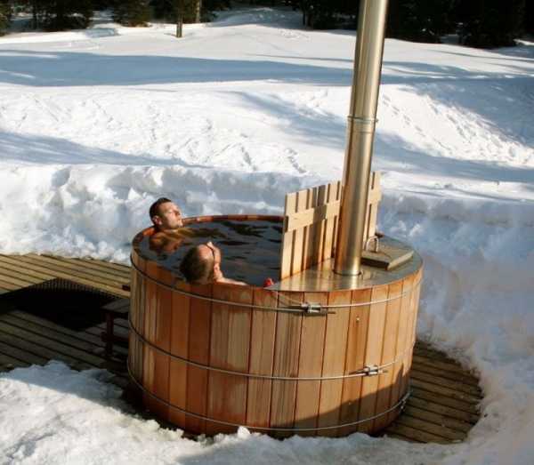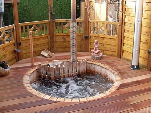 - Круглые. Подходят для обустройства традиционных купелей и японских бочек офуро с подогревом воды. Такие устройства эргономичны, не требуют много места и обеспечивают подход с любой стороны.