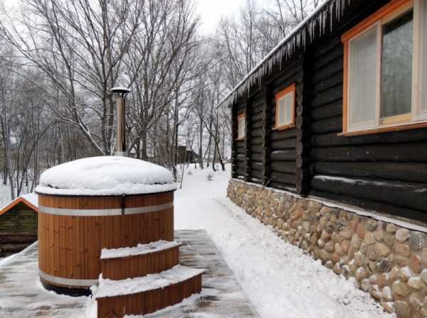 Один из вопросов, которые надо решить до установки купели — ставить ее будете внутри бани или на улице. Оба варианта имеют положительные и отрицательные стороны. Если поставить купель в бани — в комнате отдыха или в моечной, она значительно поднимет уровень влажности. Чтобы вывести излишнюю влагу нужна хорошая вентиляция. Ее то сделать можно, но при активно работающей вентиляции времени и топлива на обогрев помещений надо намного больше.