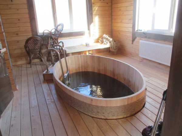 Устройства такого типа имеют небольшие габариты и оборудованы функциональной лестницей. Планировка купели выполняется совместно с проектированием бани.