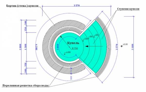 - Купель из бетона оборудуется лестницей и всем, что необходимо для осуществления определенных функций.
