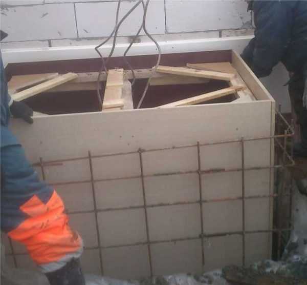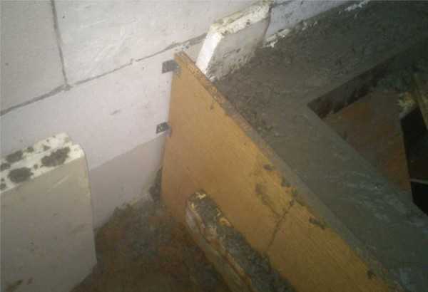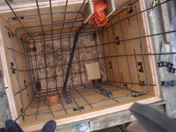 Нужна крышкаСначала залили раствора примерно на половину высоты, провибрировали его. Затем снаружи установили нарезанные заранее щиты, прикрепив их к стенам, скрепив между собой, установили распорки, чтобы не «выперло».