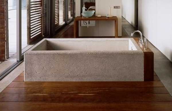 Конструкции из монолитного бетона могут иметь различные конфигурации и размеры. Высокие прочностные характеристики купелей обеспечиваются за счет армирования дна и стенок. Это самый прочный и долговечный вариант сооружений, которые обустраиваются на этапе возведения частной парной. К преимуществам бетонных изделий относятся: