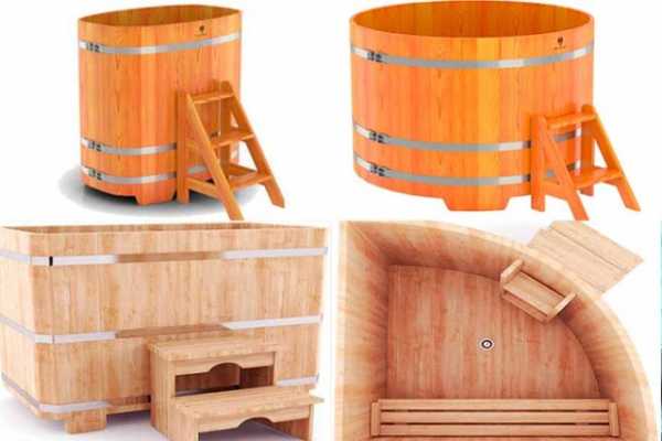 Банные купели классифицируются в зависимости от конфигурации, способа установки и материала.