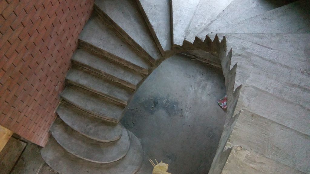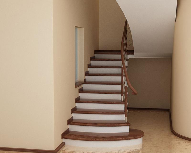 Ровная лестница с винтовым изгибом для подъема.