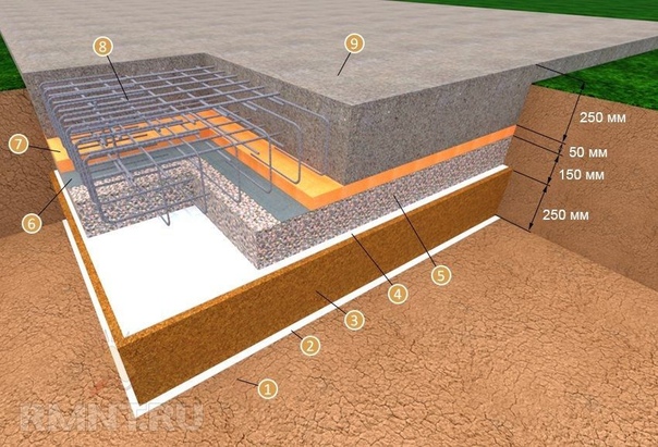 - на этом котлована идет щебневая подушка высотой до десяти сантиметров, тщательно утрамбовывается;