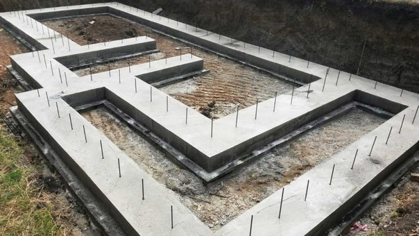 Такие канавки мы делаем только на прямолинейных участках подошвы, не доводя их до углов примерно на 0,5-0,7м. Поскольку углы являются самыми прочными частями фундаментной стены, беспокоиться о нарушении целостности фундамента в этих точках не стоит.